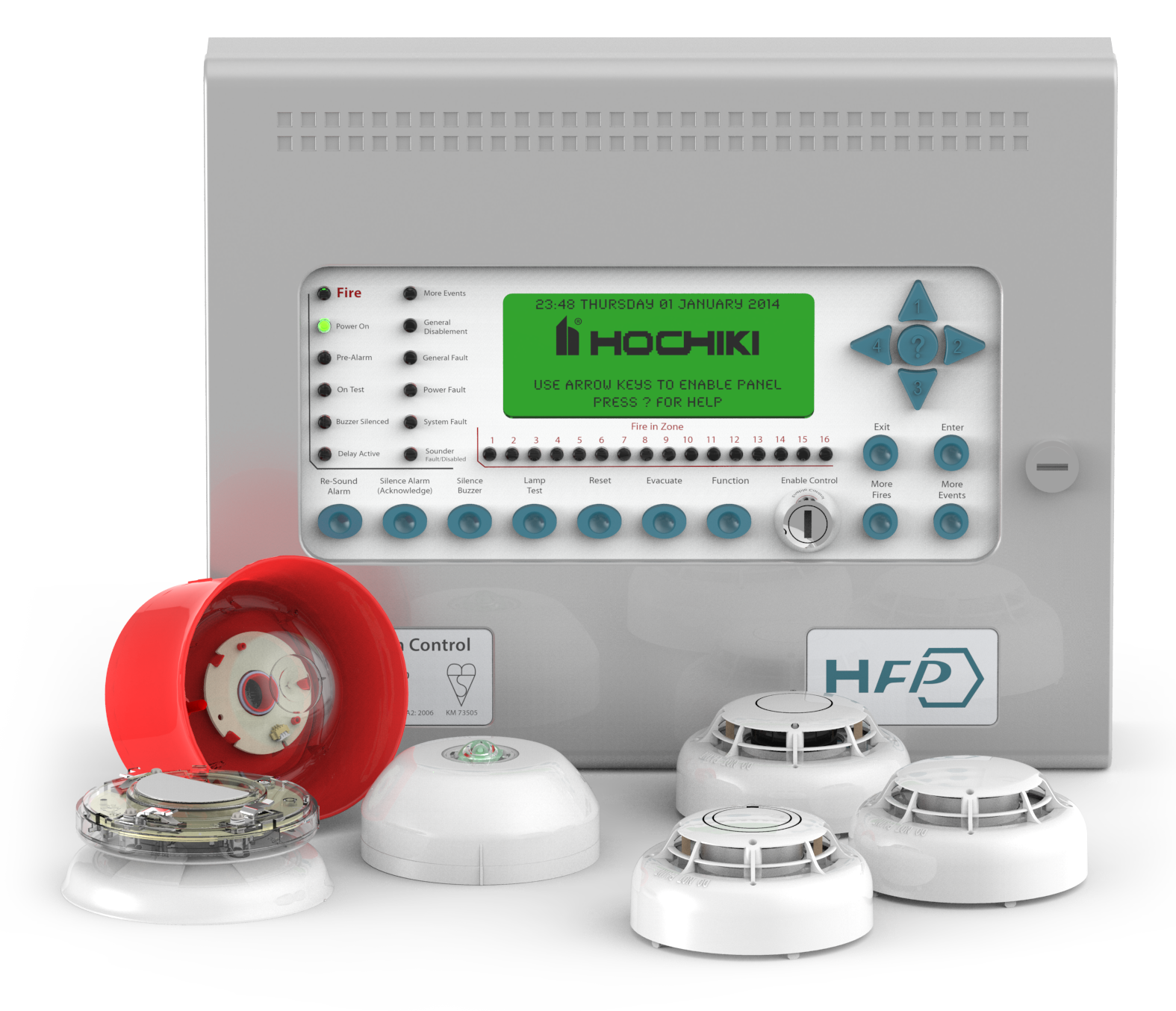 A total of over 700 HFP devices were installed including 90 interfaces, 13 heat sensors, and 77 call points including weatherproof call points. A number of combined smoke and heat detectors, single and dual input modules, and dual relay controllers were also used.
